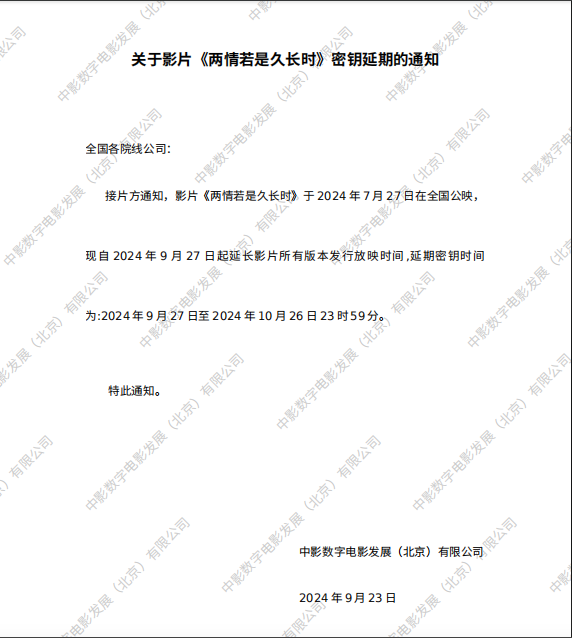 《两情若是久长时》第三次密钥延期的通知