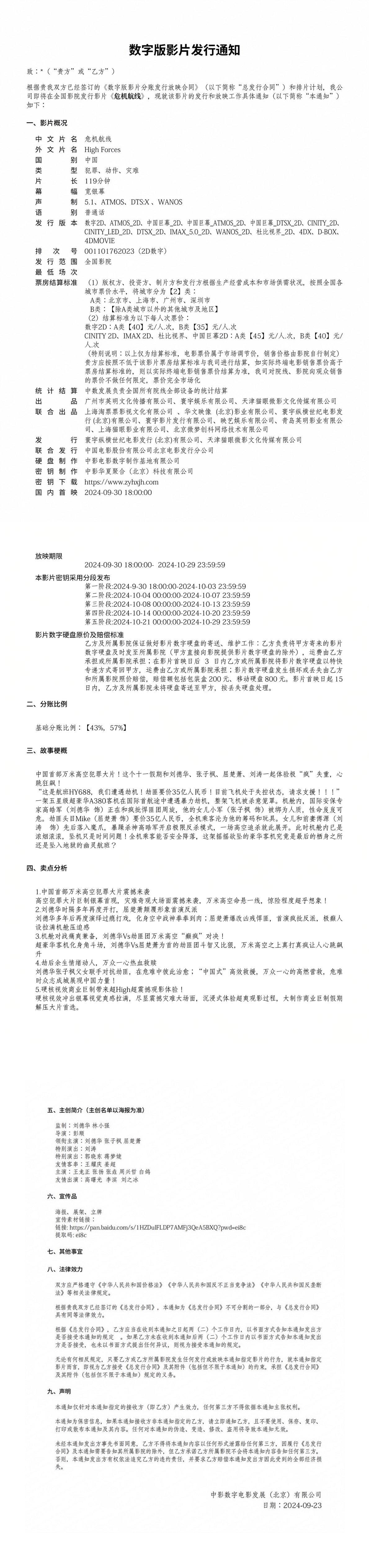 《危机航线》二轮点映的通知