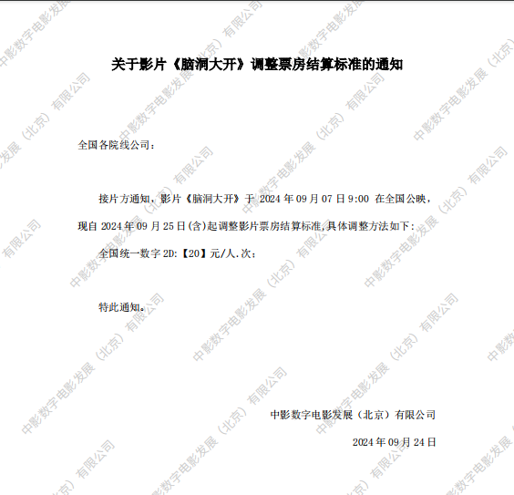 关于影片《脑洞大开》档期变更及全国点映的通知