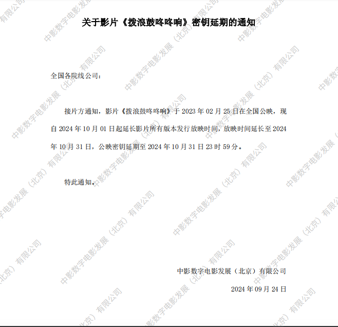 《拨浪鼓咚咚响》第三十二次密钥延期的通知