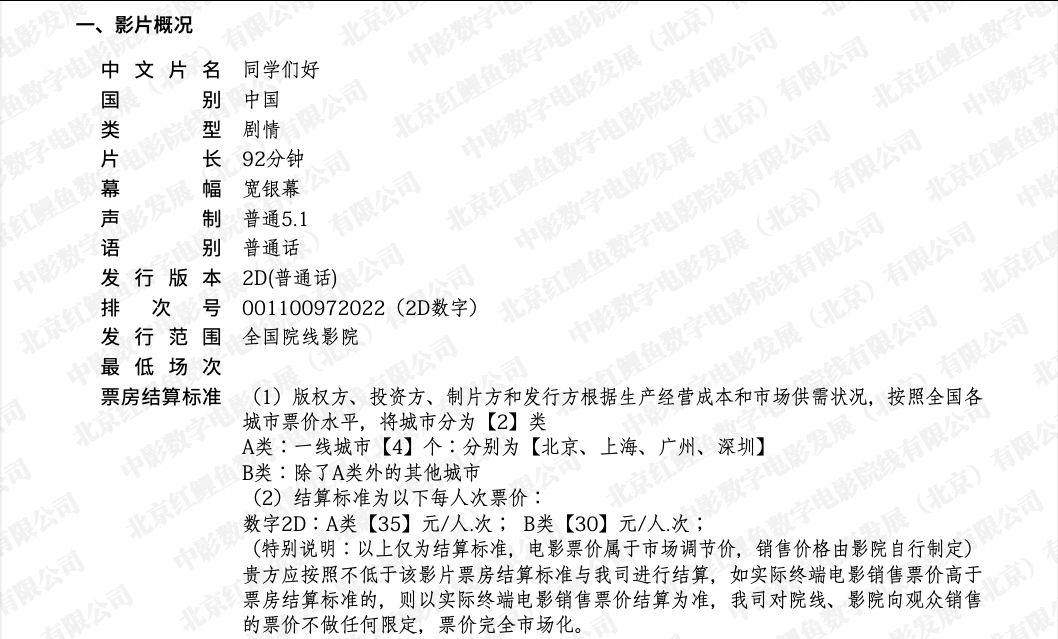 发行通知 » 《同学们好》发行通知