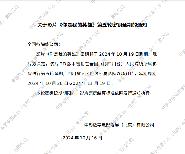 《你是我的英雄》第十六次密钥延期的通知