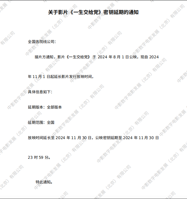 发行通知 » 《一生交给党》第三次密钥延期的通知