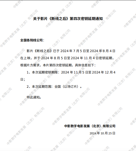 关于影片《断线之后》密钥延期通知