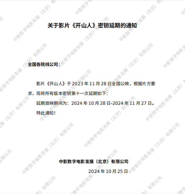 《开山人》第十次以场订片的通知