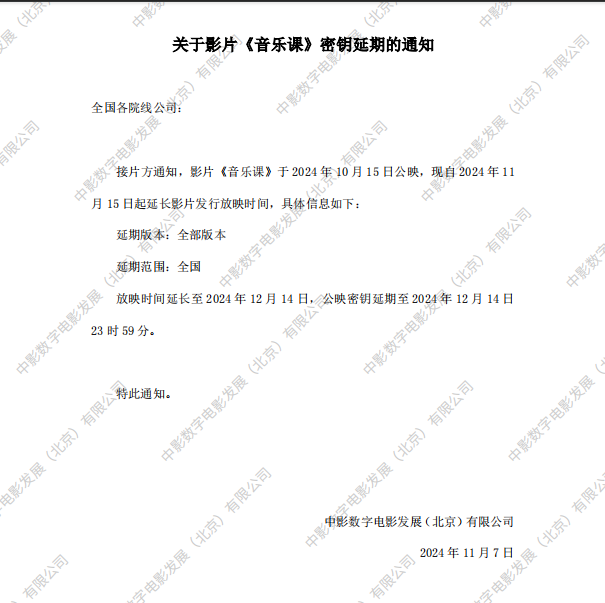 《音乐课》第十二次密钥延期的通知