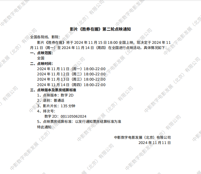 《胜券在握》第二轮点映通知