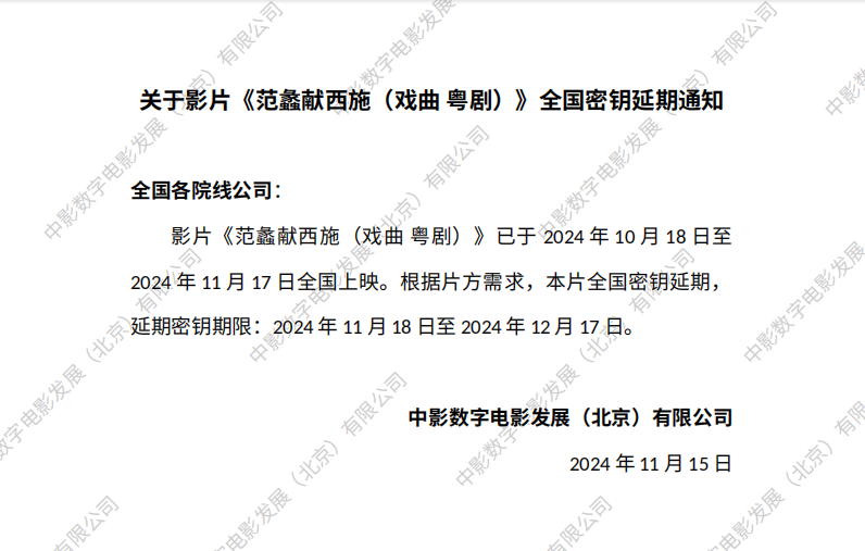 致院线-关于影片《八戒之天蓬下界》第八次全国密钥延期通知