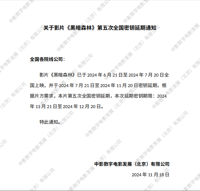 《黑暗森林》第三次全国密钥延期的通知