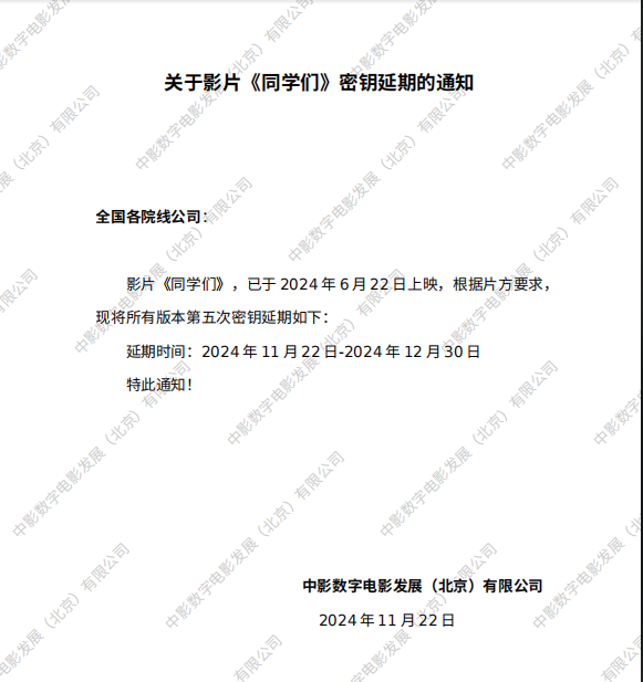 《同学们好》第六次密钥延期的通知