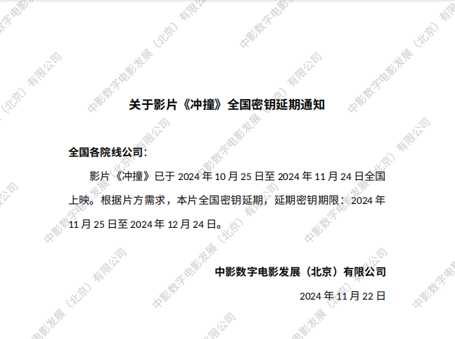 《冲撞》全国密钥延期的通知