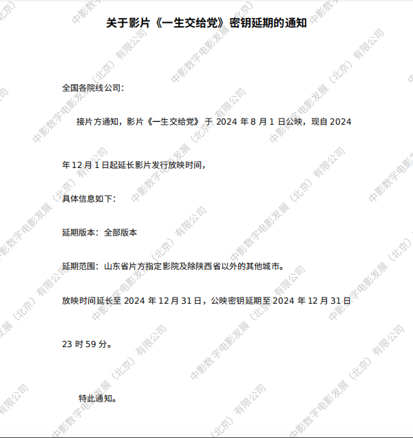 发行通知 » 《一生交给党》第四次密钥延期的通知