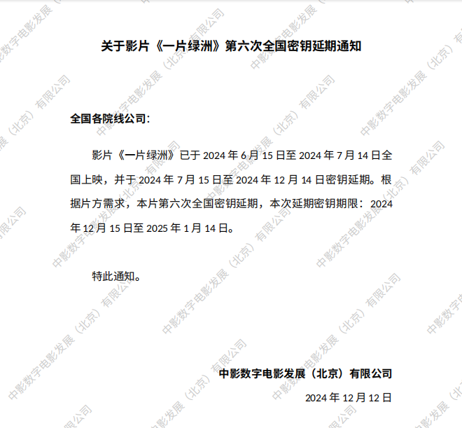 《一片绿洲》第四次全国密钥延期的通知