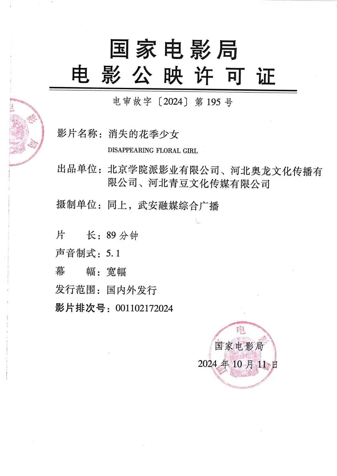 发行通知 » 《消失的花季少女》发行通知