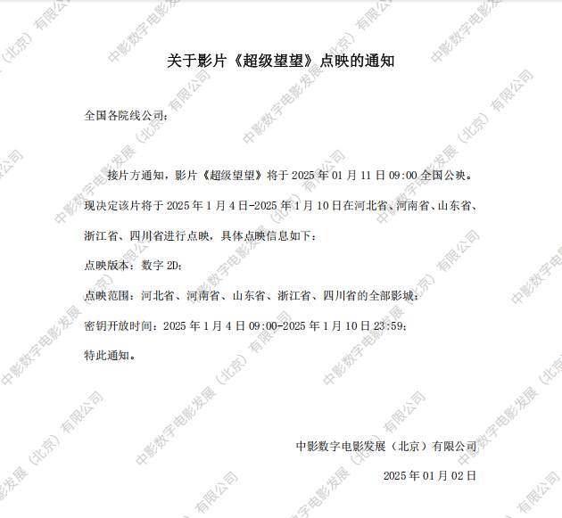 关于影片《夜王》密钥延期的通知