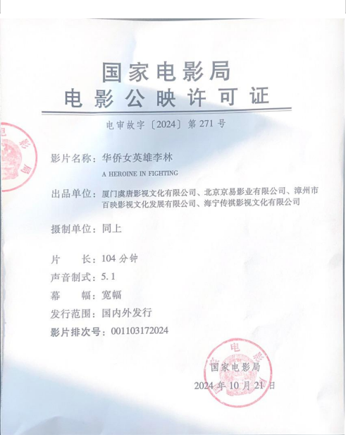 出 品:厦门虞唐影视文化有限公司、北京京易影业有限公司、漳州市百映影视文化发展有限公司、海宁传祺影视文化有限公司