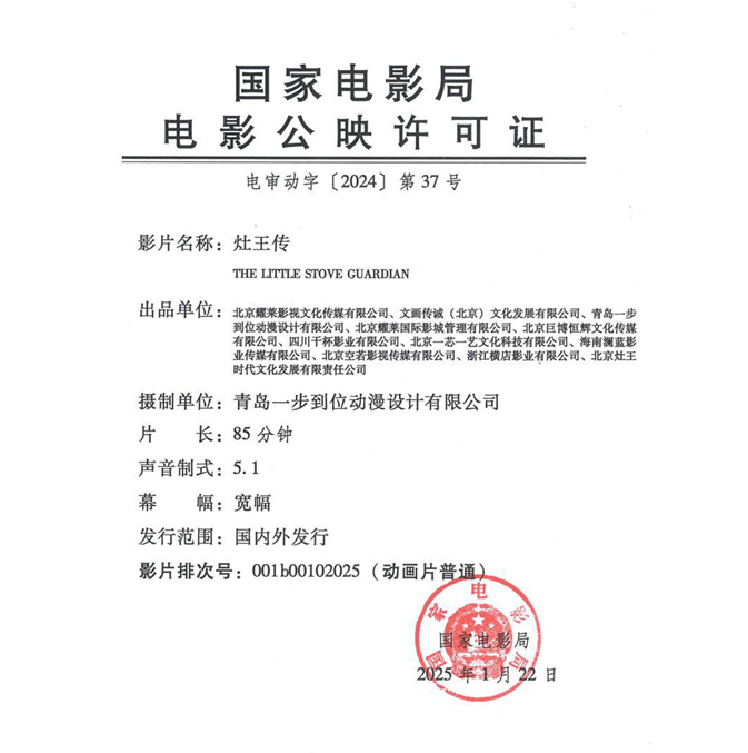 联合出品:文画传诚(北京)文化发展有限公司、青岛一步到位动漫设计有限公司、北京耀莱国际影城管理有限公司、北京巨博恒辉文化传媒有限公司、四川干杯影业有限公司、北京一芯一艺文化科技有限公司、海南澜蓝影业传媒有限公司、北京空若影视传媒有限公司、浙江横店影业有限公司、北京灶王时代文化发展有限责任公司