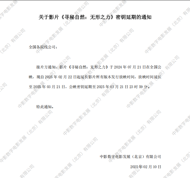 《寻秘自然:无形之力》调整票房结算标准的通知