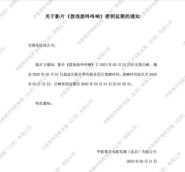 《拨浪鼓咚咚响》第三十二次密钥延期的通知