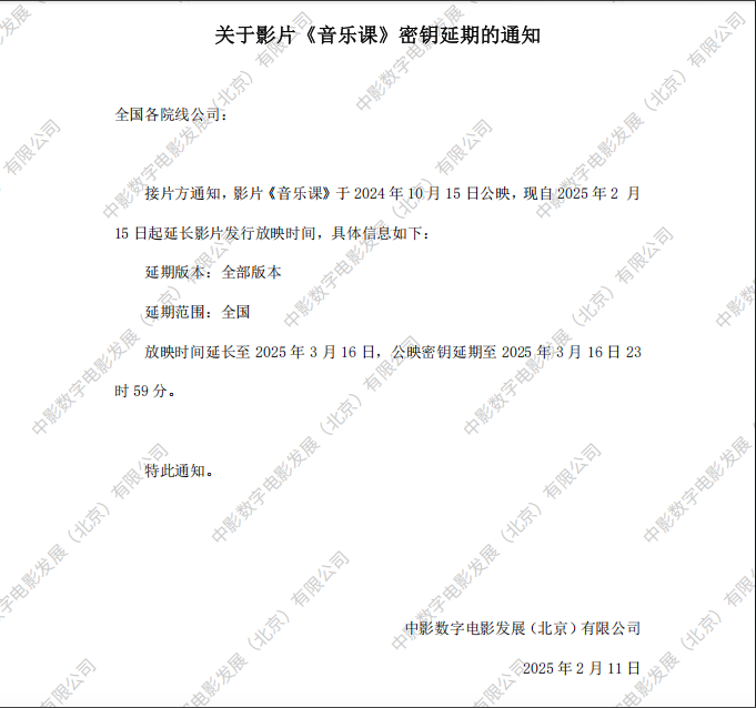 《音乐课》第十二次密钥延期的通知