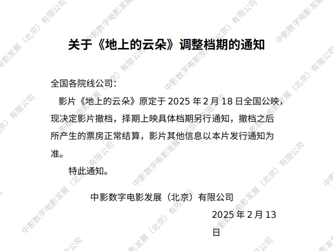 关于影片《地上的云朵》全国密钥延期通知