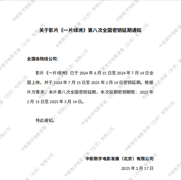 《一片绿洲》第七次全国密钥延期的通知