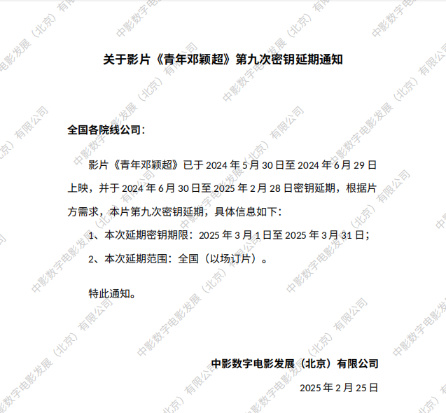 《青年邓颖超》第七次密钥延期的通知