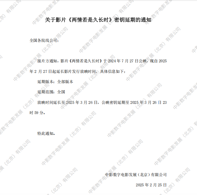 《两情若是久长时》第二次密钥延期的通知