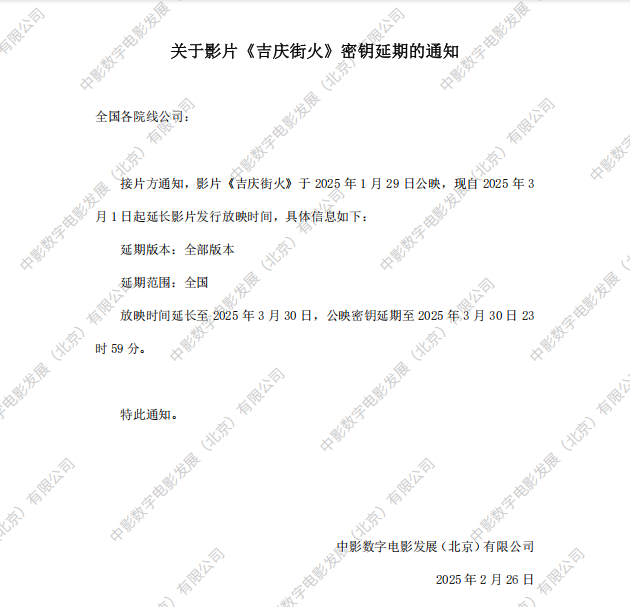发行通知 » 《吉庆街火》密钥延期的通知