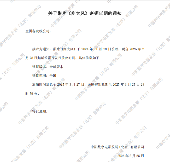 《刮大风》二次密钥延期的通知
