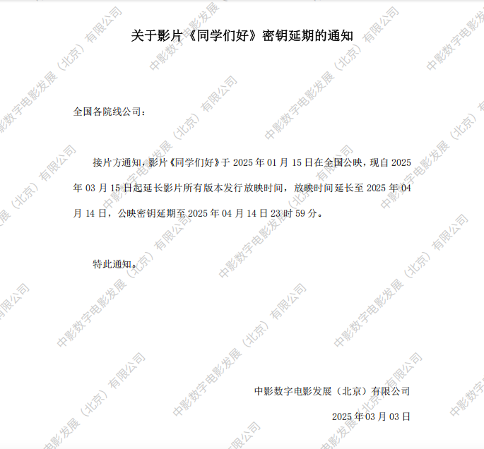 发行通知 » 《同学们好》第二次密钥延期的通知