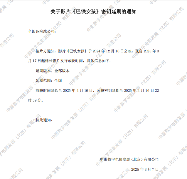 《巴铁女孩》第十三次密钥延期的通知