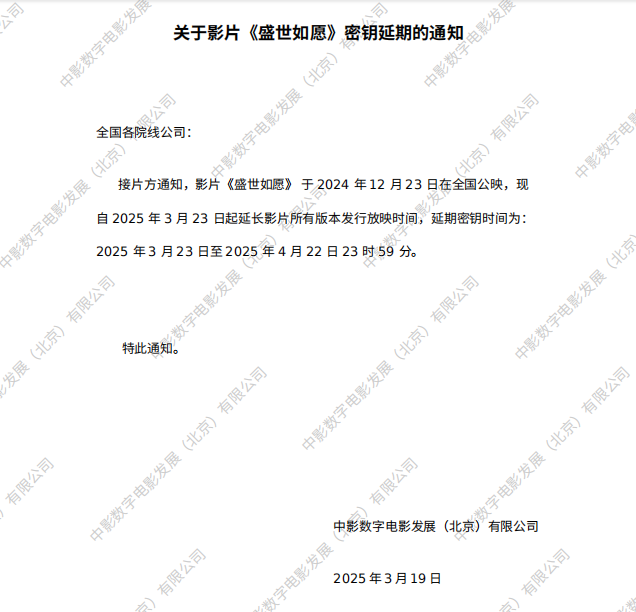 《盛世如愿》第十次密钥延期的通知