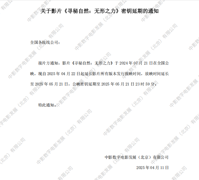 《寻秘自然:无形之力》调整票房结算标准的通知