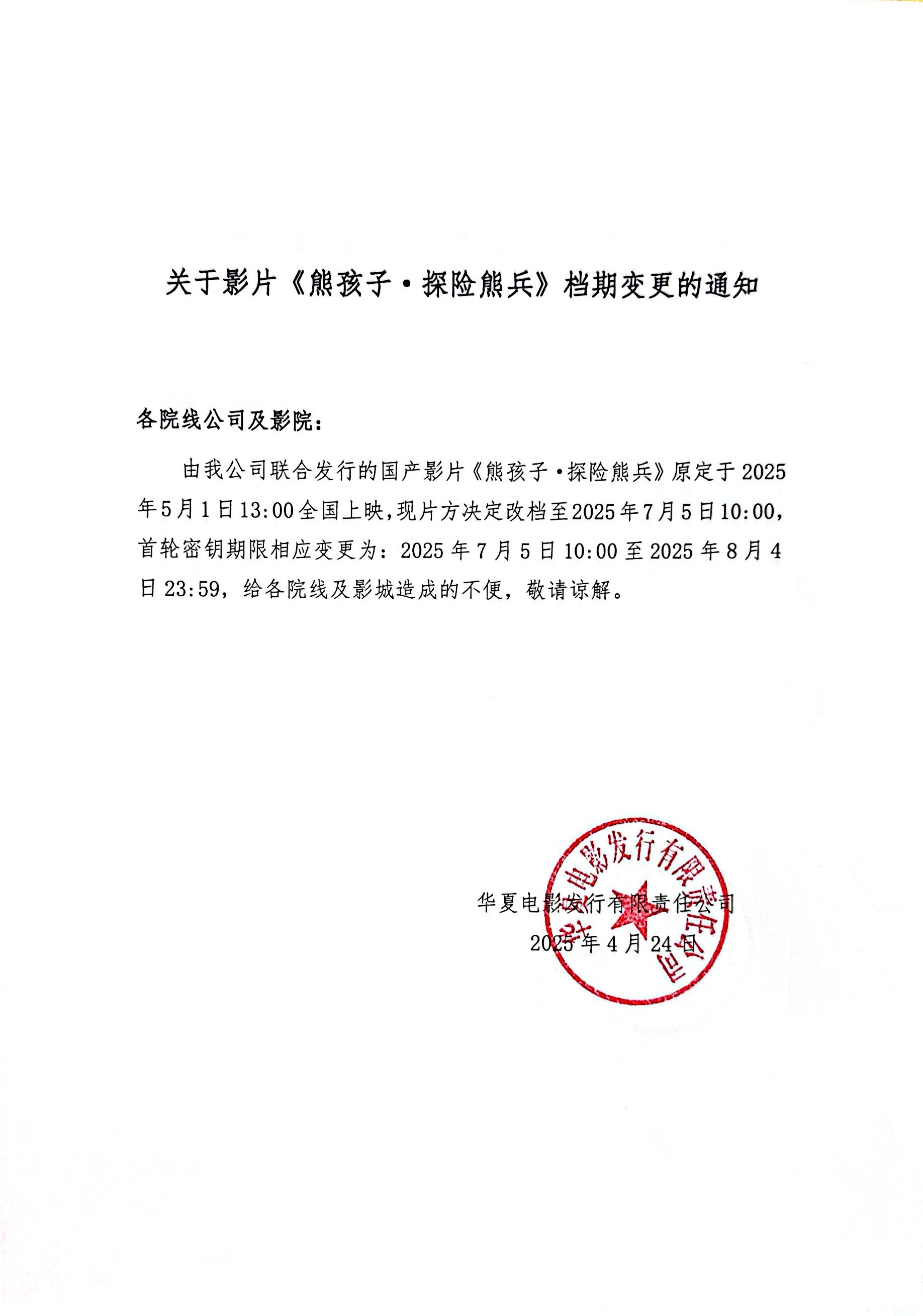 发行通知 » 《熊孩子·探险熊兵》档期变更的通知