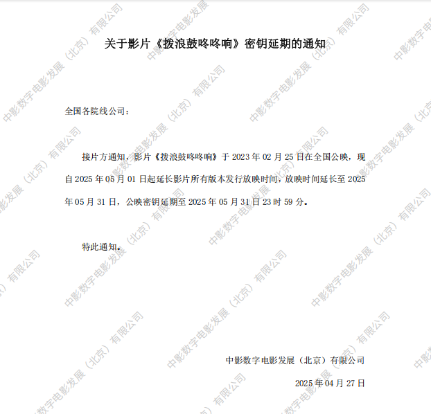 《拨浪鼓咚咚响》第三十一次密钥延期的通知