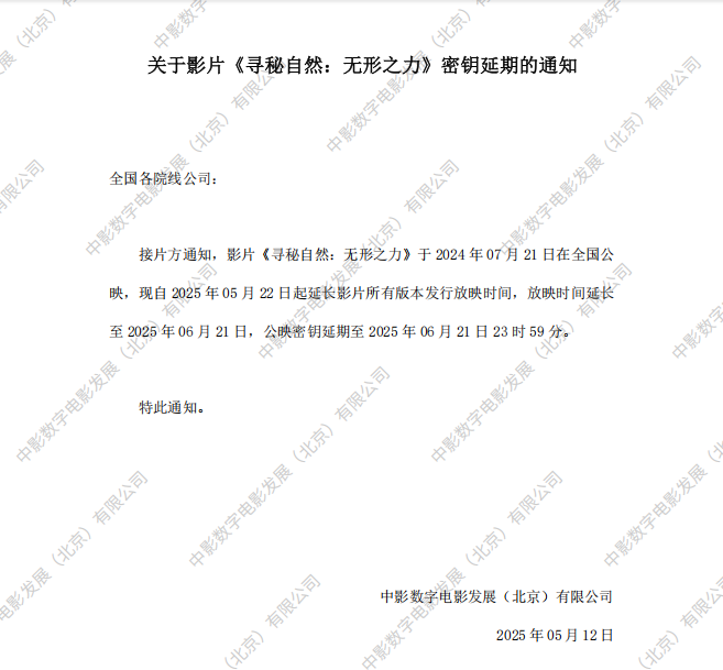 《寻秘自然:无形之力》调整票房结算标准的通知
