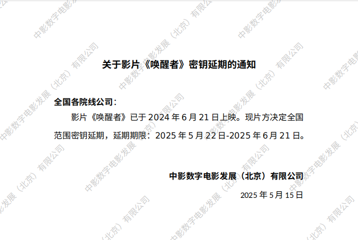 关于影片《唤醒者》密钥延期的通知