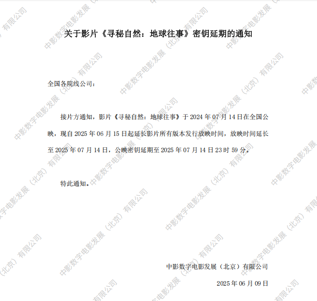 关于影片《寻秘自然:地球往事》15次密钥延期的通知