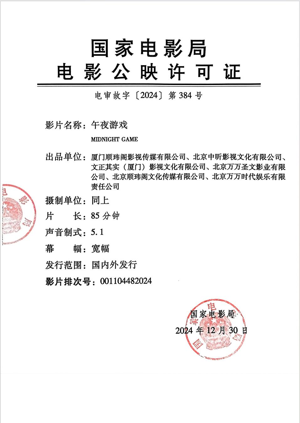 《午夜游戏》全国点映的通知