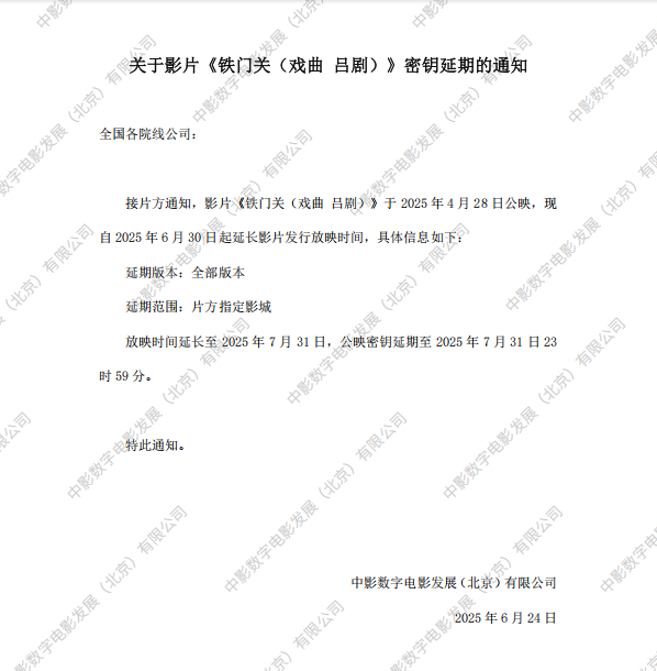 发行通知 » 《铁门关(戏曲 吕剧)》第二次密钥延期的通知