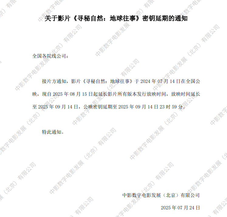 《寻秘自然:地球往事》调整票房结算标准的通知