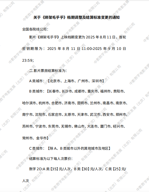 《绑架毛乎乎》档期调整的通知