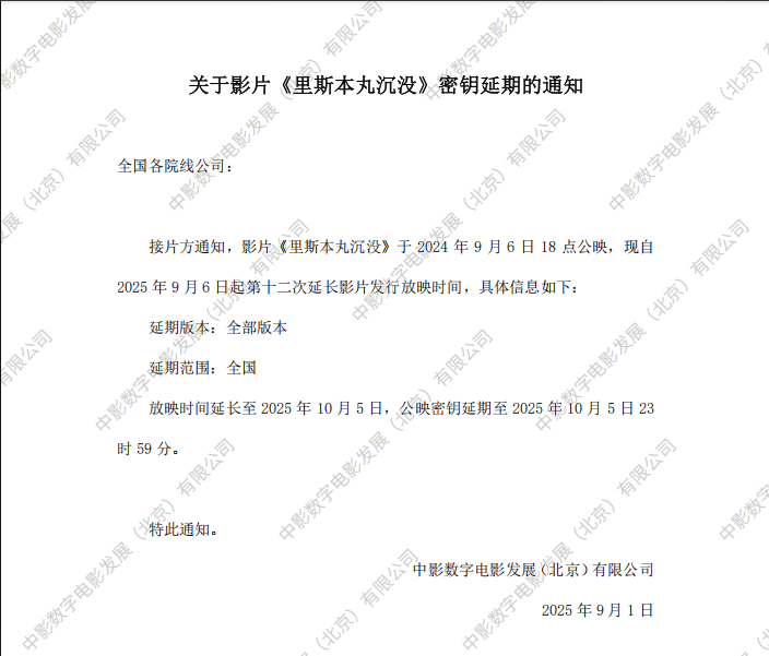 《里斯本丸沉没》第九次密钥延期的通知