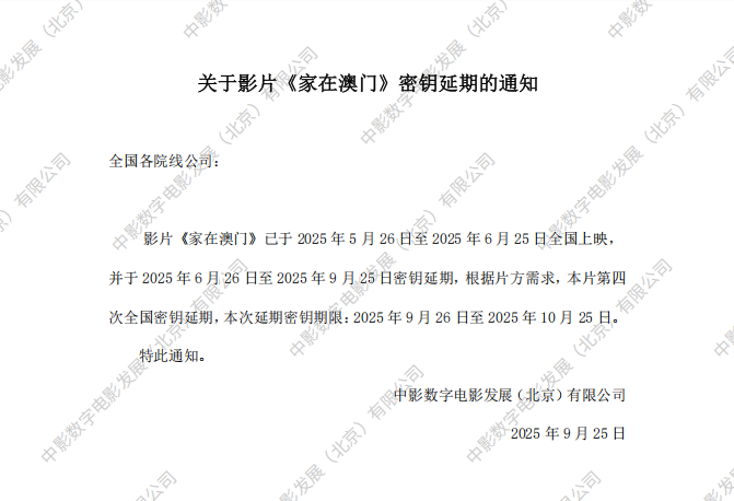 《家在澳门》第三次全国密钥延期的通知