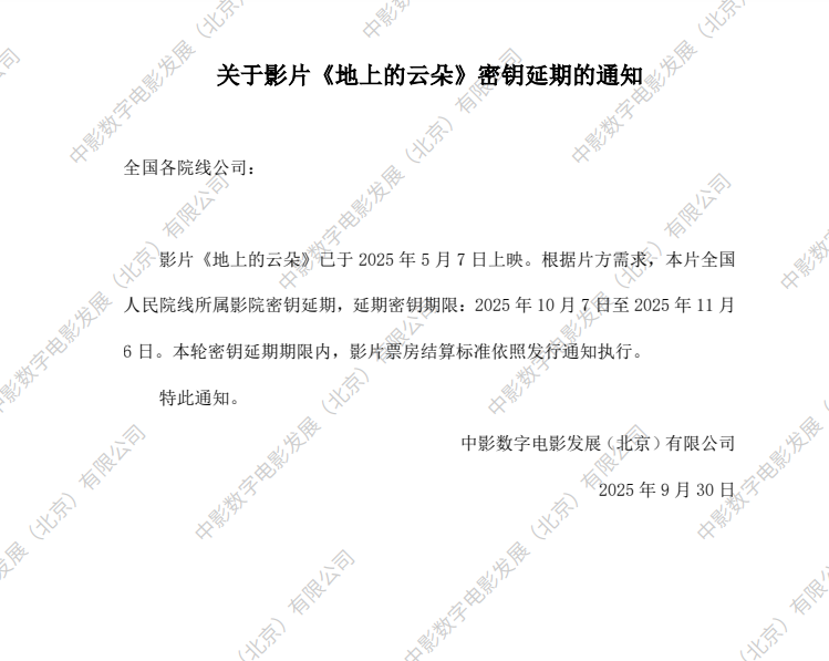 《地上的云朵》密钥延期的通知