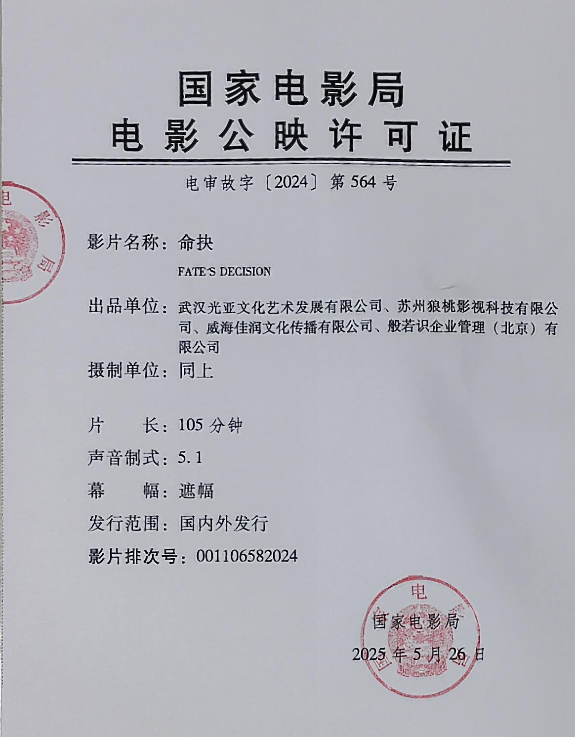 《致命抉择》发行通知