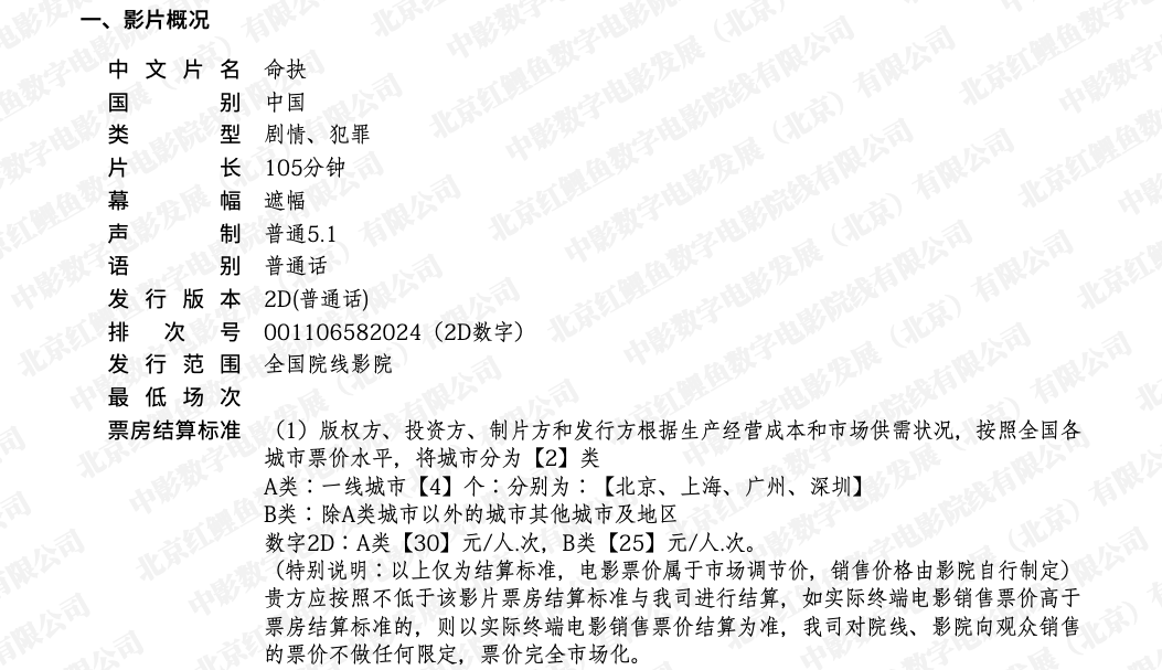 《命抉》点映的通知