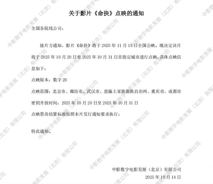 《命抉》发行通知