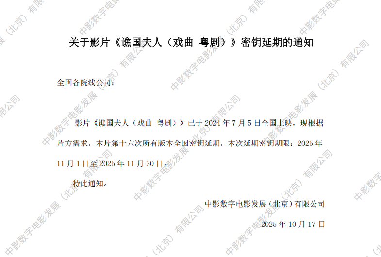 《吉庆街火》第十二次密钥延期的通知